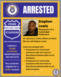Stephen Lewis, 29, was charged with Possession of a Controlled Substance with the Intent to Manufacture/Deliver/Sell to wit: Marijuana and Possession of a Controlled Substance with the Intent to Manufacture/Deliver/Sell to wit: Buprenorphine.