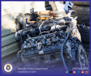 Following a two-week investigation, the Memphis Police Department’s Ridgeway Station, in partnership with the MPD Auto Theft Task Force and the U.S. Marshals Service, shut down an illegal chop shop operation and arrested two individuals connected to vehicle theft activity.