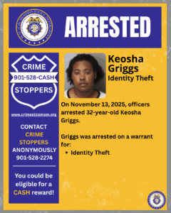 - Keosha Griggs, 32 – Arrested on a warrant for Identity Theft